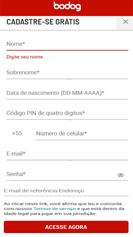 - Abra o aplicativo Bodog e toque em “Registrar”.
